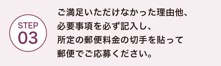 ※応募ハガキに記入された情報の不備による住所不明、転居先不明、長期ご不在等、当社の責に帰さない事由により、返金書類が不達となった場合、ご応募を無効といたします。